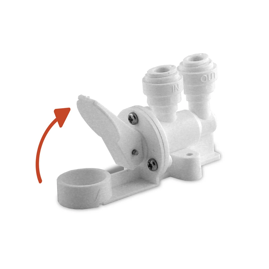This simple leak detector protects you from damage resulting from leaks. When the replaceable sponge gets wet, it expands and causes the lever to flip up, stopping the flow of water.