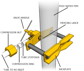 This way you do not need to use the self-piercing valve to shut the water off. The valve will usually not leak unless you use it as a shut-off.